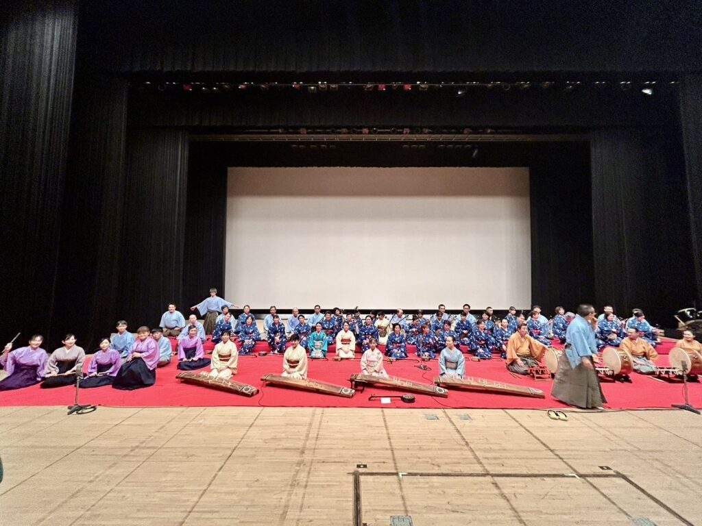 「沖縄芸能フェスティバル2024」が11月16日に文京シビックホールで開かれ、八重山古典音楽協会の一員として箏で出演しました。50人超の唄三線、箏、笛、太鼓の共演でした。